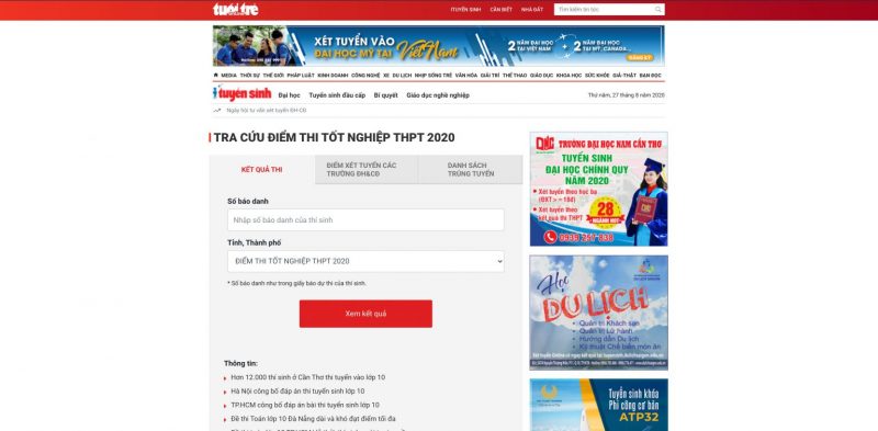 - Báo Tuổi trẻ: https://diemthi.tuoitre.vn/kythi2020.html