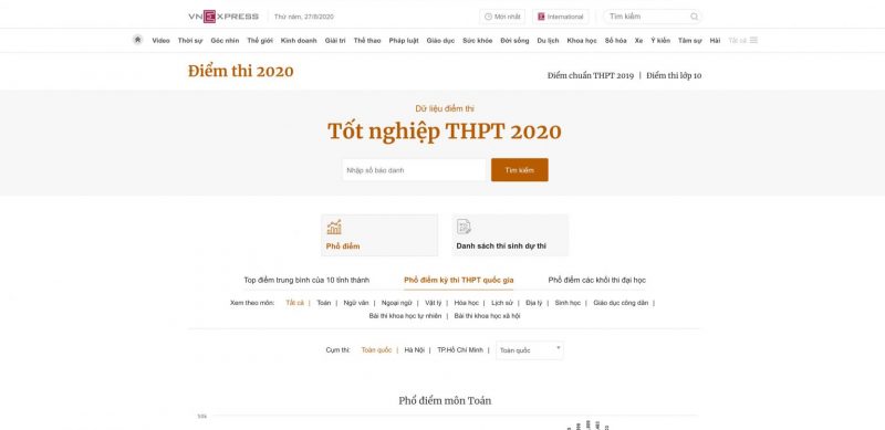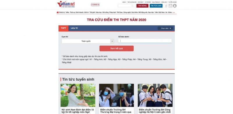 3. Một số trang tra cứu điểm thi THPT Quốc gia 2020 theo số báo danh thí sinh