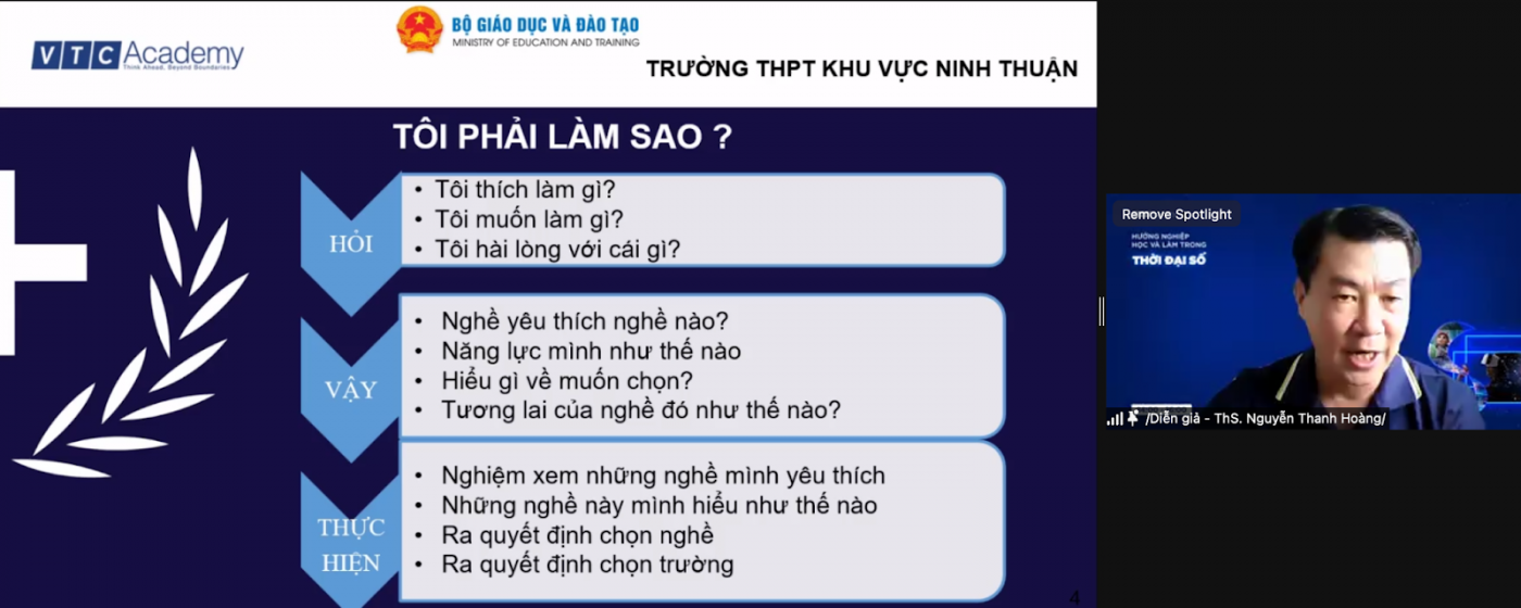 Vào ngày 26/12/2021 vừa qua, chương trình Hướng nghiệp trực tuyến đã tổ chức vô cùng thành công và hấp dẫn với sự tham gia của nhiều học sinh khối lớp 12 đến từ nhiều trường THPT tại khu vực Ninh Thuận, bao gồm các trường THPT: Chu Văn An, Nguyễn Trãi, Nguyễn Văn Linh, Lê Duẩn, Nguyễn Du, Chuyên Lê Quý Đôn, Tháp Chàm & Tôn Đức Thắng.