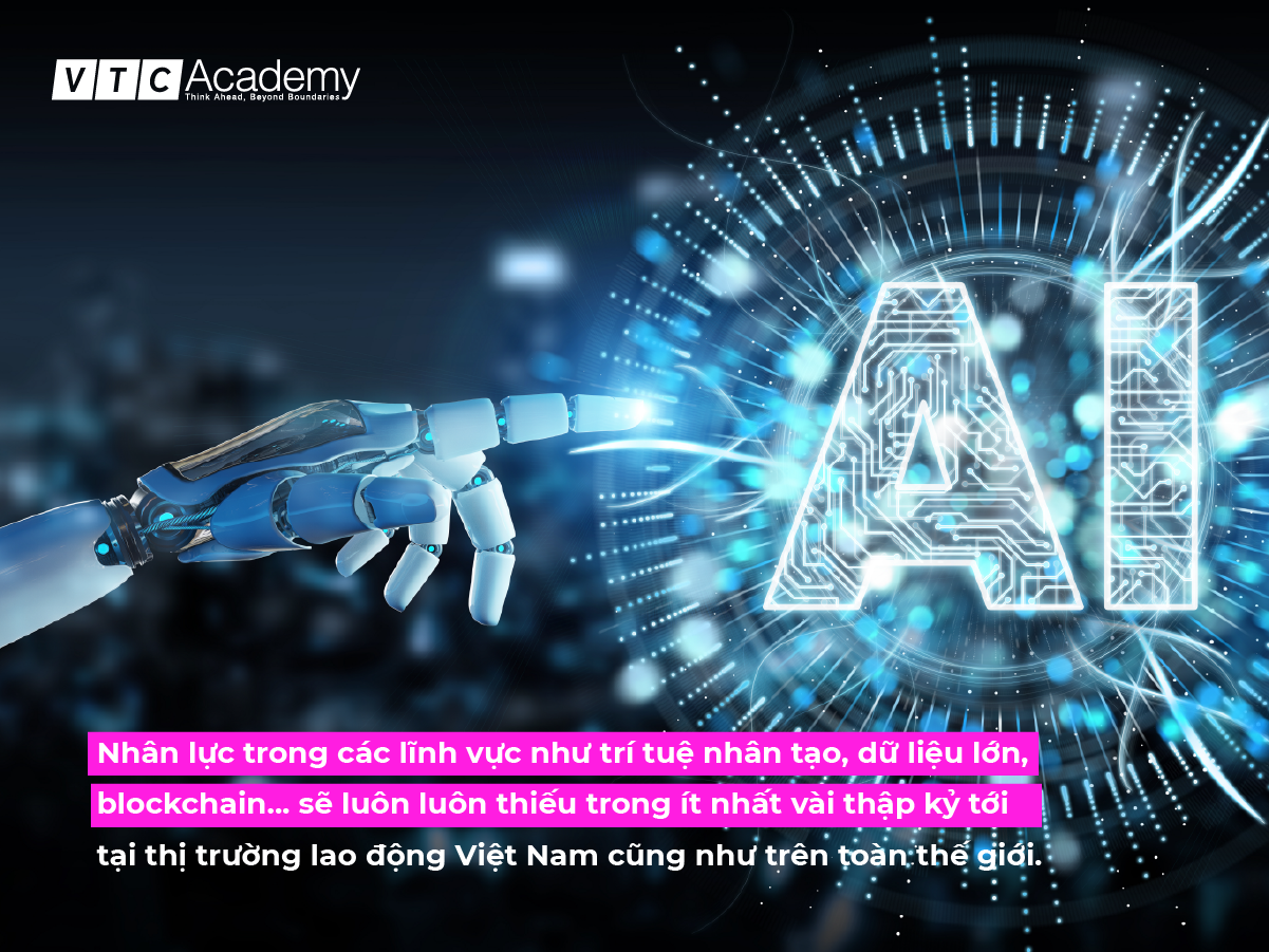 Các ngành liên quan tới cuộc cách mạng công nghiệp 4.0: Cuối cùng, các ngành có sức nóng rất lớn trong tương lai chính là các ngành nghề và lĩnh vực liên quan mật thiết tới cuộc cách mạng 4.0 như trí tuệ nhân tạo (AI), robot, dữ liệu lớn (big data), điện toán đám mây, blockchain,… Nhân lực trong các lĩnh vực này sẽ luôn luôn thiếu trong ít nhất vài thập kỷ tới tại thị trường lao động Việt Nam cũng như trên toàn thế giới.