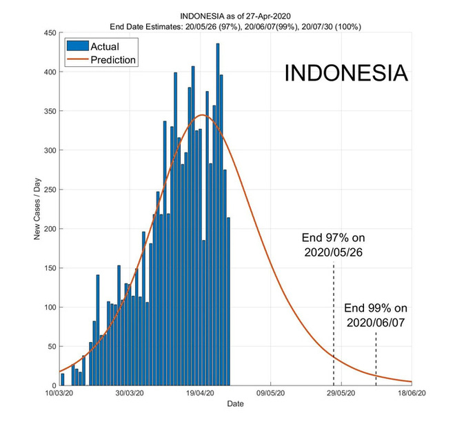 Thuật toán dự báo Indonesia, một trong những quốc gia Đông Nam Á đã bị ảnh hưởng nặng nề bởi đại dịch, sẽ chỉ phục hồi vào ngày 30/7.