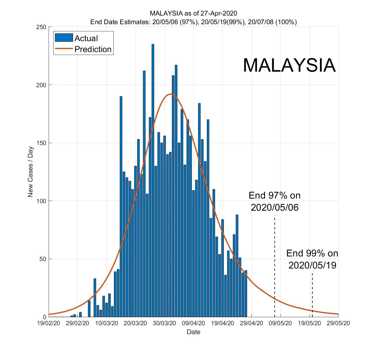 Ở phía nửa đầu, dự báo của thuật toán dường như không rõ. Nhưng khi đường cong phẳng, dự báo dường như chính xác hơn. Malaysia được dự báo sẽ chấm dứt đại dịch vào ngày 8/7.