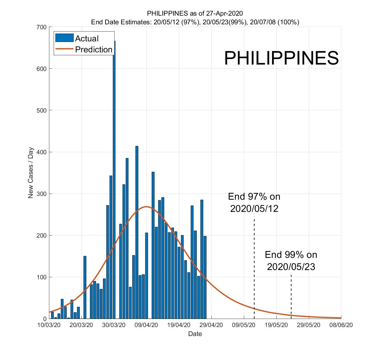Dự báo về Philippines dường như ở nhiều thời điểm, có thể là do dữ liệu nước này cung cấp không đầy đủ. Nhưng thuật toán dự báo virus sẽ chấm dứt ở nước này vào ngày 8/6.