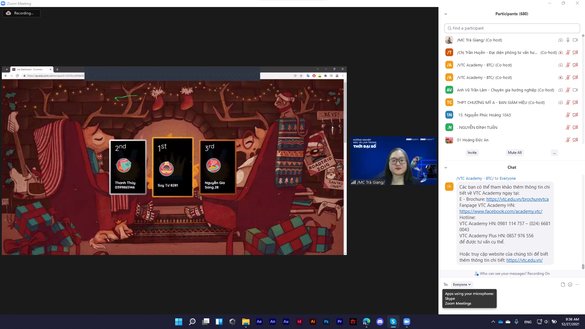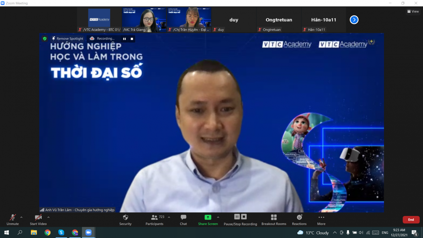Để tiếp nối sự thành công của Chuỗi chương trình Định hướng nghề nghiệp do Bộ Giáo dục và Đào tạo đồng hành cùng Học viện VTC Academy tổ chức trong những năm gần đây nhằm triển khai Đề án 1665 về “Hỗ trợ học sinh sinh viên khởi nghiệp đến năm 2025” trên toàn quốc. Thì mới đây, ngày 27/12/2021 VTC Academy đã tổ chức Talkshow “Hướng nghiệp học và làm trong thời đại số” cho các bạn học sinh trường THPT Chương Mỹ A – Hà Nội.